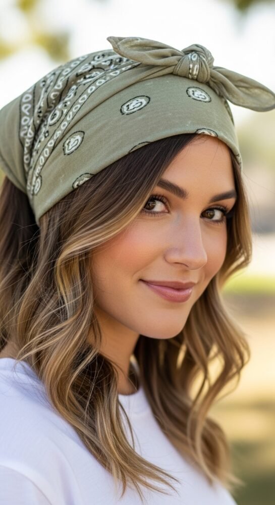 On days when your hair is a bit greasy or you just don’t feel like styling it, a bandana is your best friend. This works for all hair lengths and types. You can wear your hair down, in a low bun, or a braid.