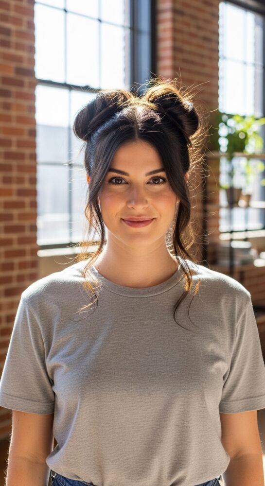 For those days when you feel a bit more playful, space buns are a fantastic choice. They work well on short to medium hair and are especially cute on curly or coily textures that provide natural “poufs.”