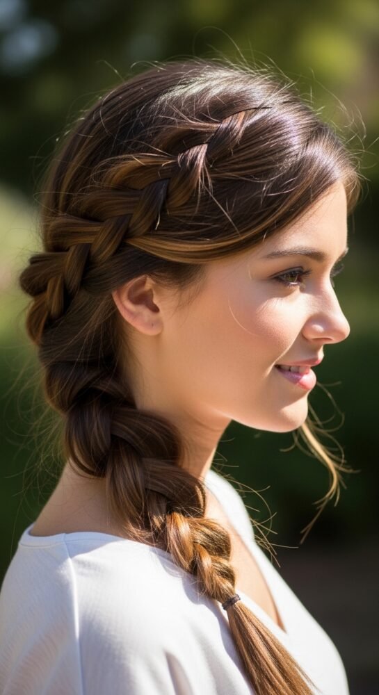 A simple side braid offers a romantic, bohemian feel that requires zero heat and very little effort. It is a fantastic option for long hair, especially if you have thick or wavy textures that hold a braid well without slipping.