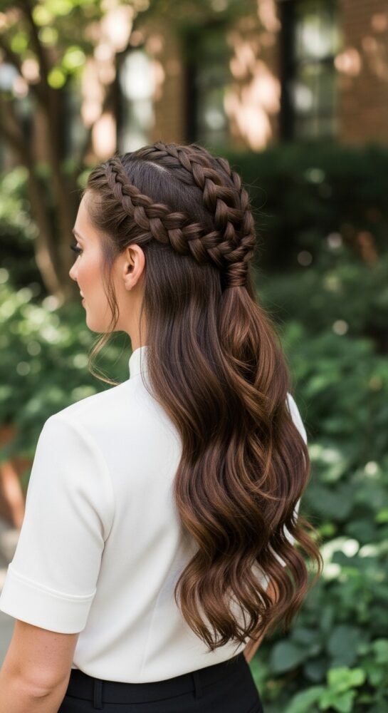 For those who have mastered a basic braid, the double dutch half-up style offers a sporty and cute aesthetic. It suits medium to long hair and works well on thick hair that needs some weight distributed.