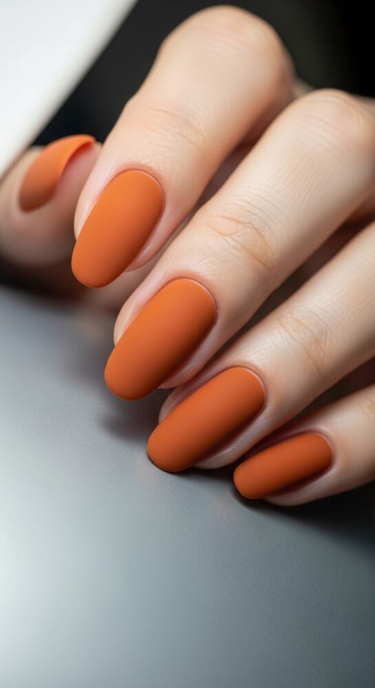Nothing says autumn quite like burnt orange, making it a staple for fall season nail ideas. This look is a solid, deep orange with hints of terracotta and brown. It captures the very essence of a pumpkin patch or a forest in mid-October.
