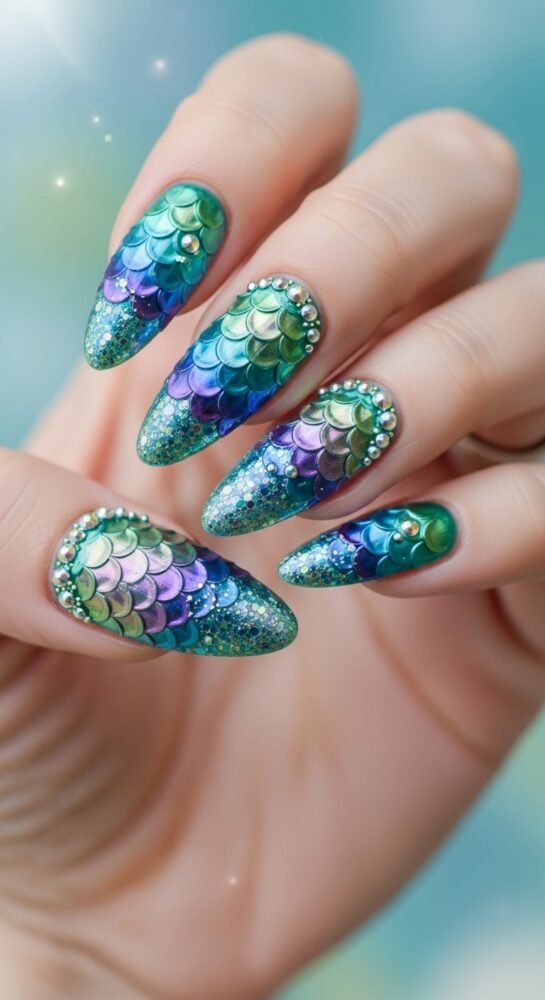 It is perfect for the “beach bum” who wants a sophisticated, understated manicure. This is an excellent everyday summer look that feels fresh and cooling. It fits the “mermaidcore” trend but in a more subtle, weathered-by-the-sea way.